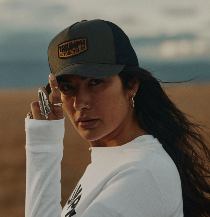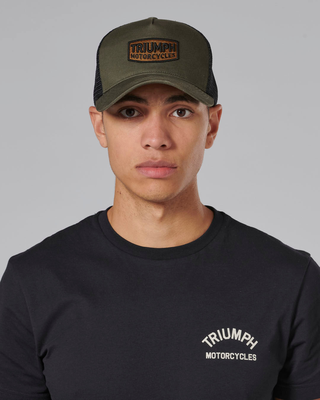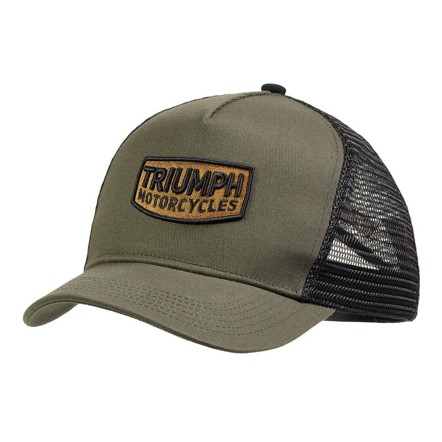 Classico Berretto in vero stile camionista di colore Khaki, con magnifica patch Triumph nella parte frontale !!