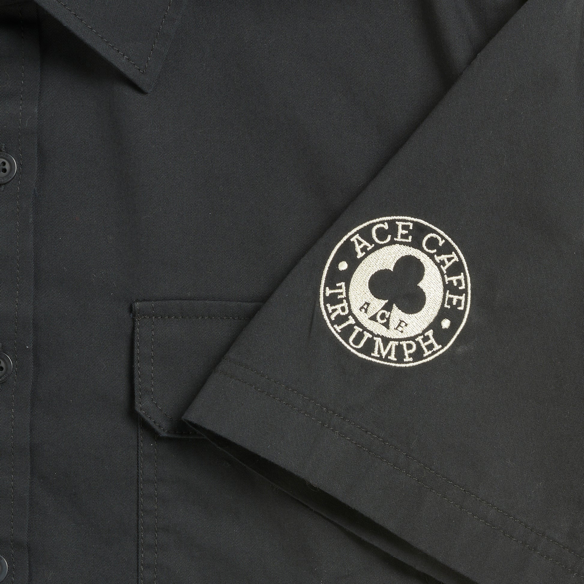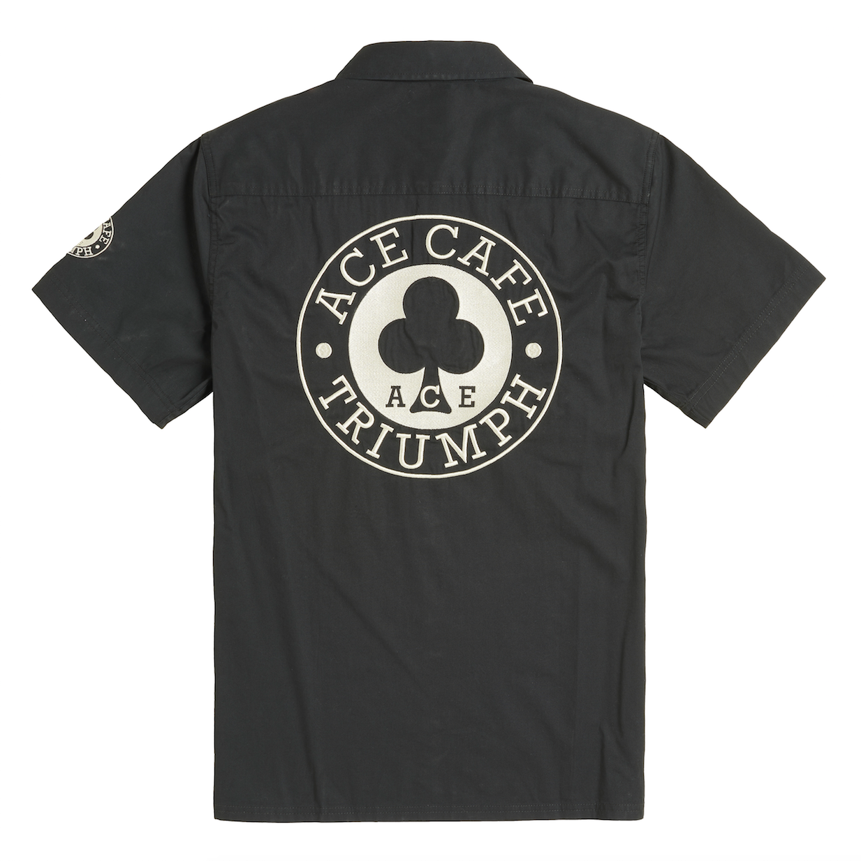 - In stile abbottonato con logo Triumph X Ace Cafe ricamato personalizzato sulla manica sinistra.