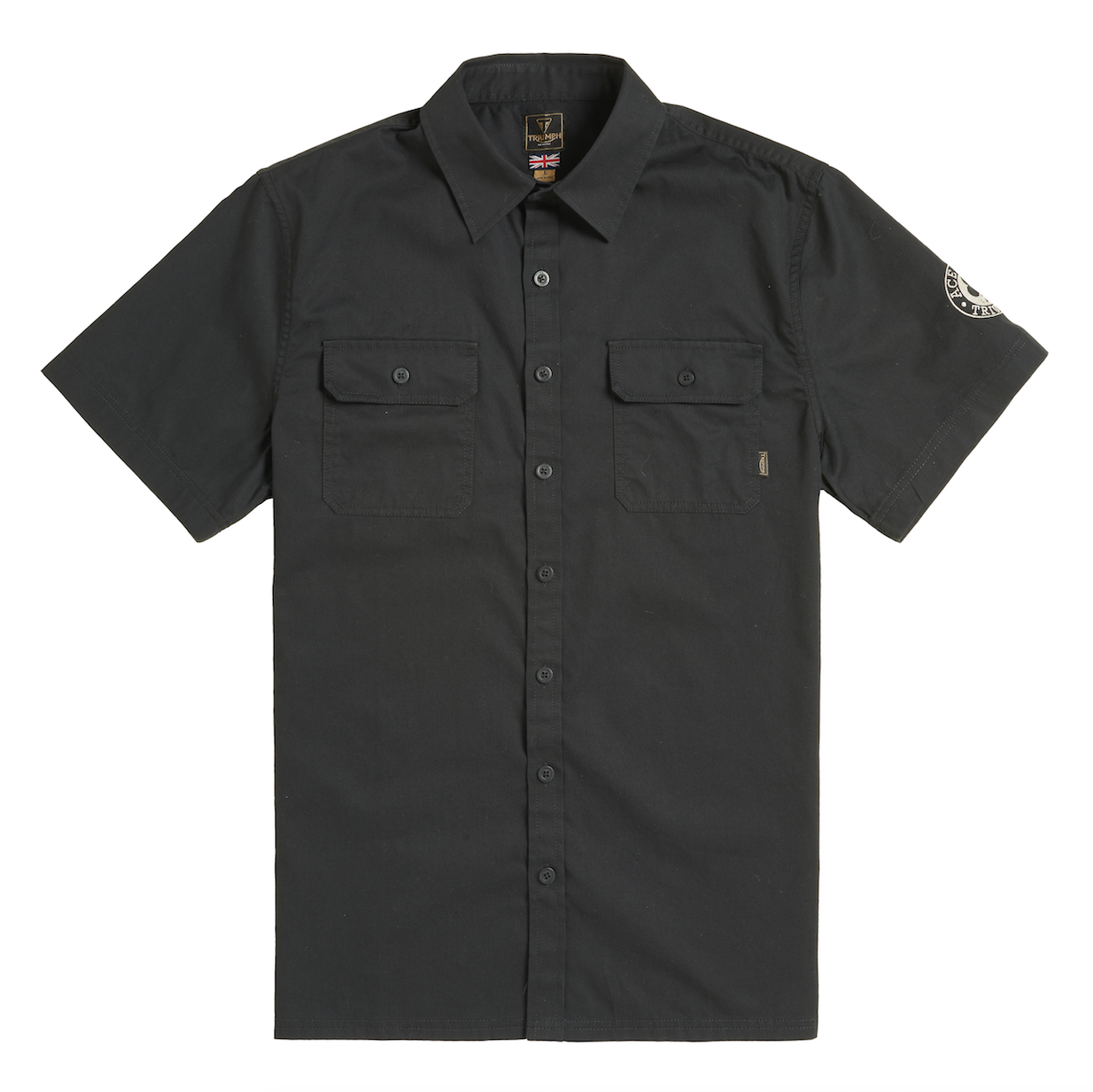 Magnifica ed elegante camicia Ace a mezza manica ricamata di colorazione nera... nata dalla collaborazione tra Triumph e Ace Café, perfetta per le uscite di ogni giorno distinguendosi con uno stile che risulta elegante ma allo stesso tempo comodo e fresco !!