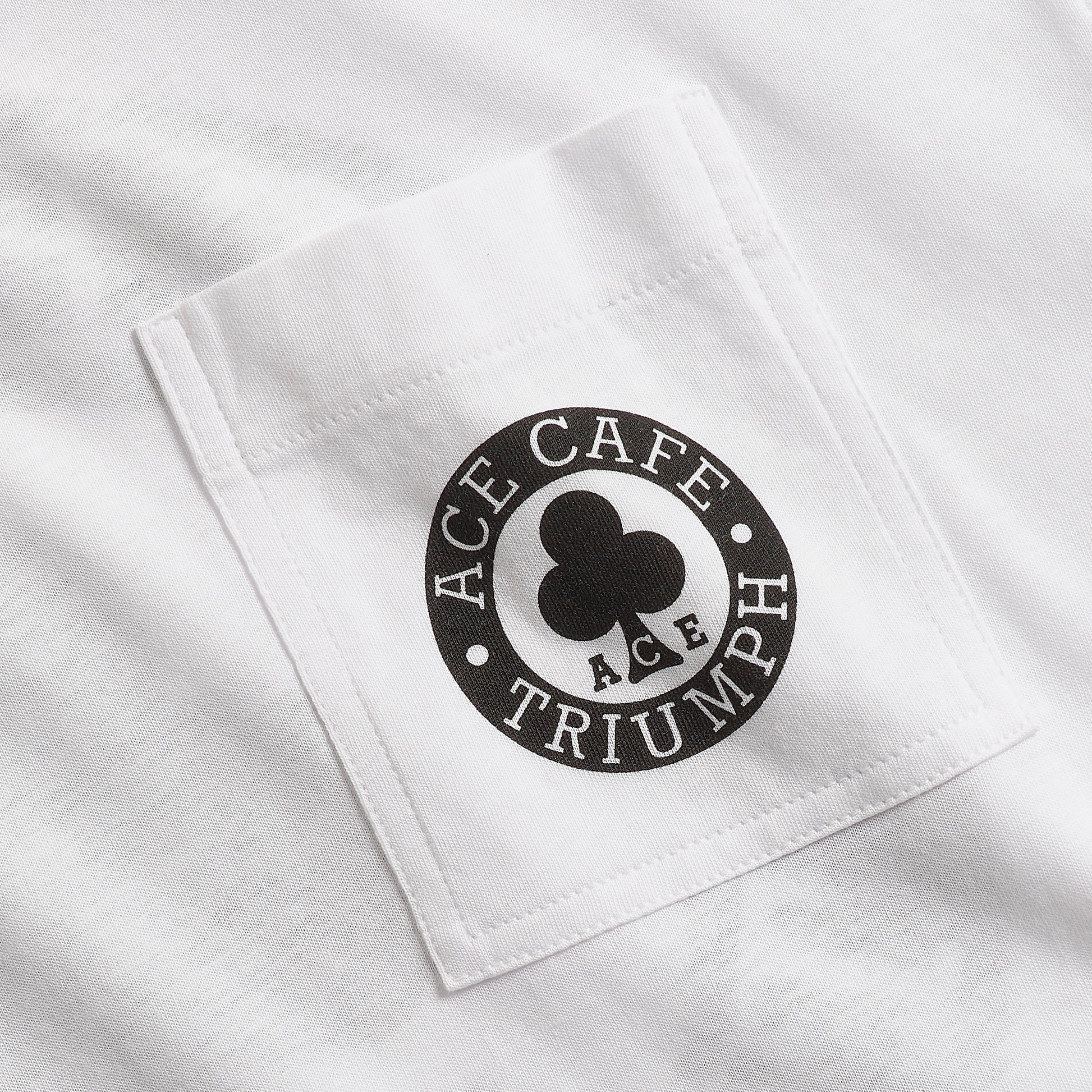 - Caratterizzata da una classica tasca applicata con logo "Triumph X Ace Cafe" in nero.