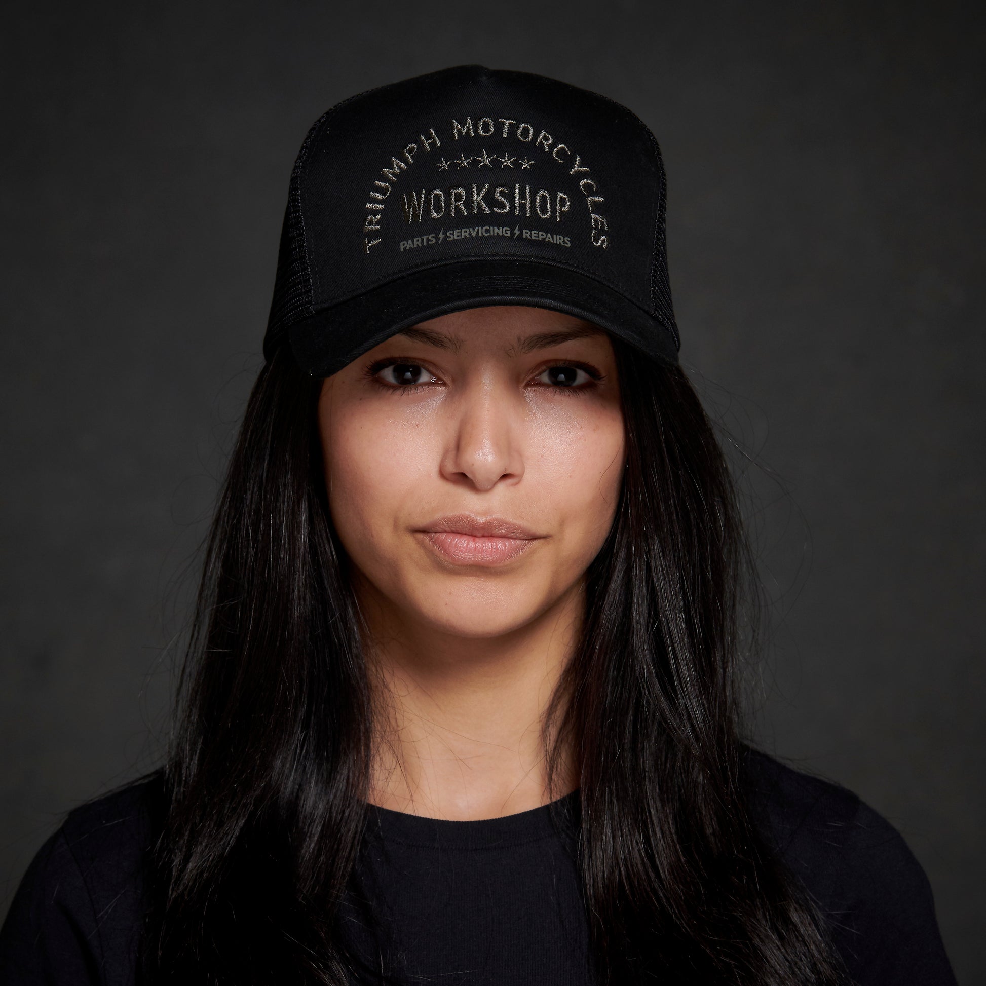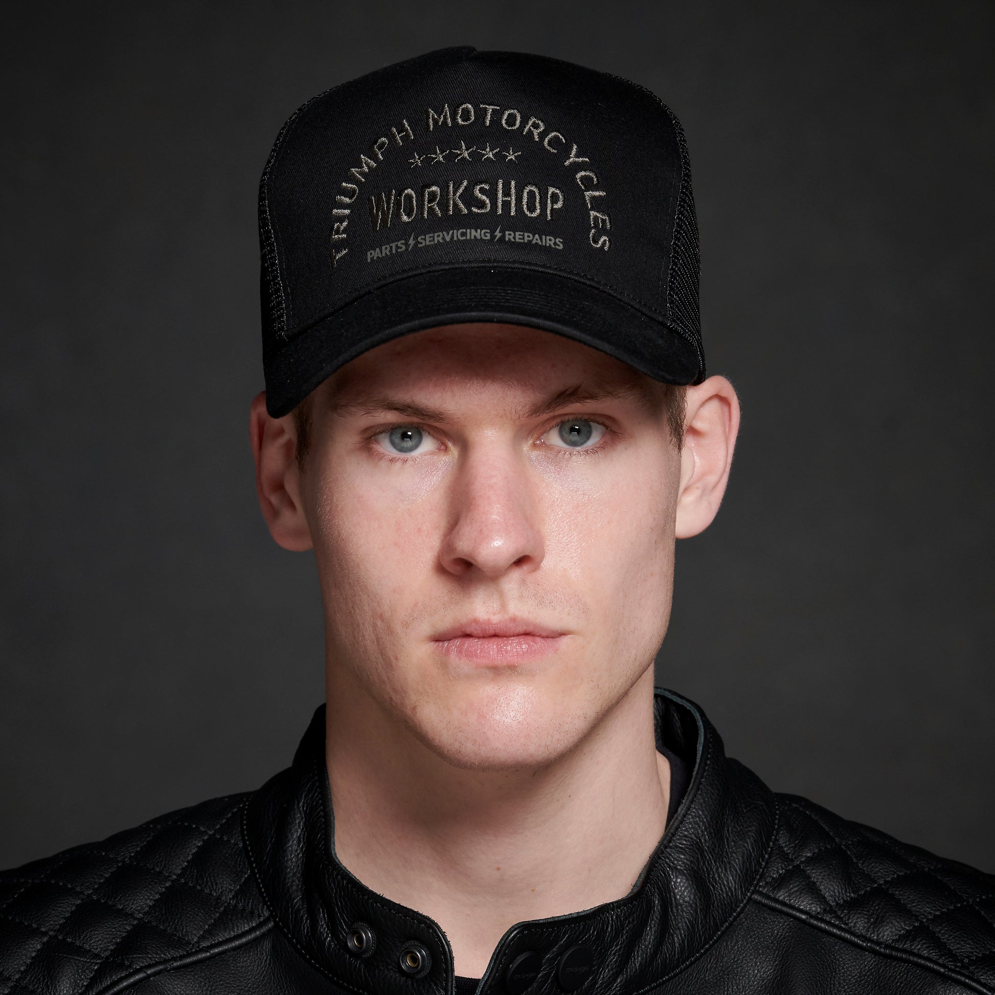 Il Cappellino Workshop ha una visiera curva rinforzata con cuciture e un retro in rete. Rifinito con disegno ad arco Triumph Workshop ricamato sul davanti.