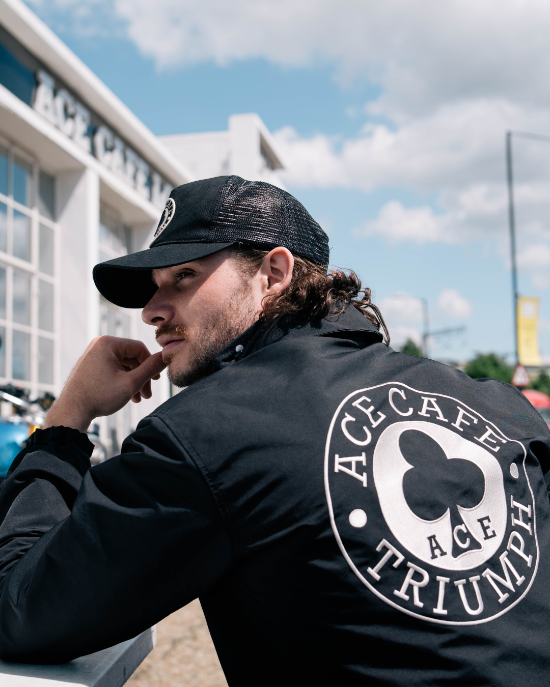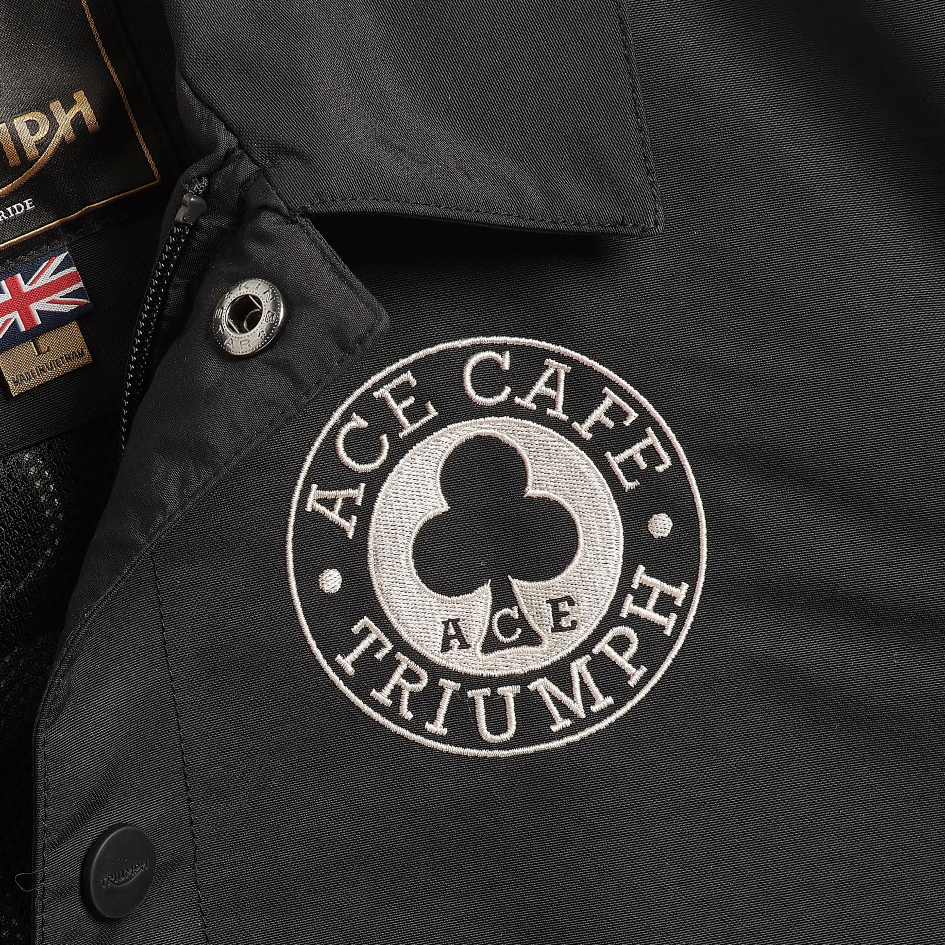 - Caratterizzata da logo "Triumph X Ace Cafe" ricamato personalizzato sul petto.