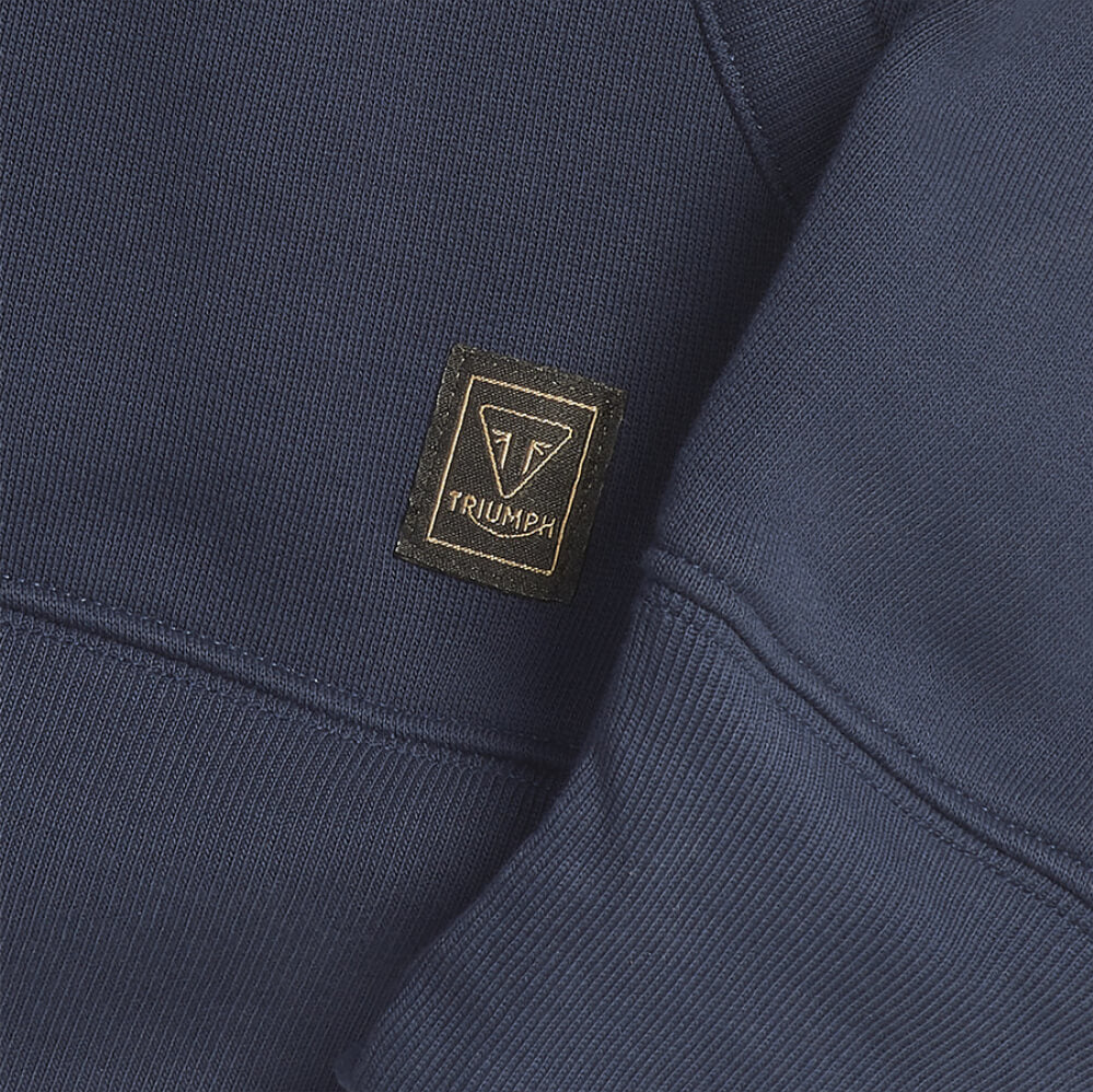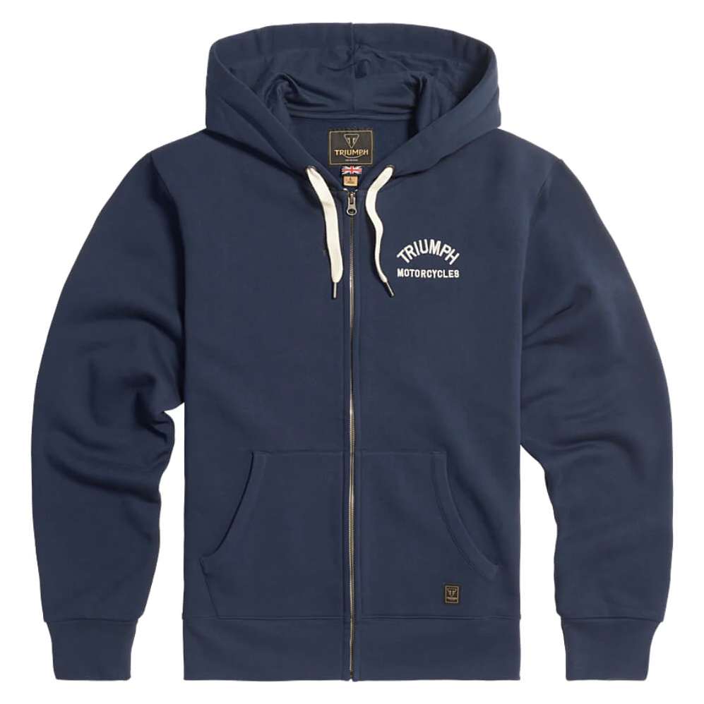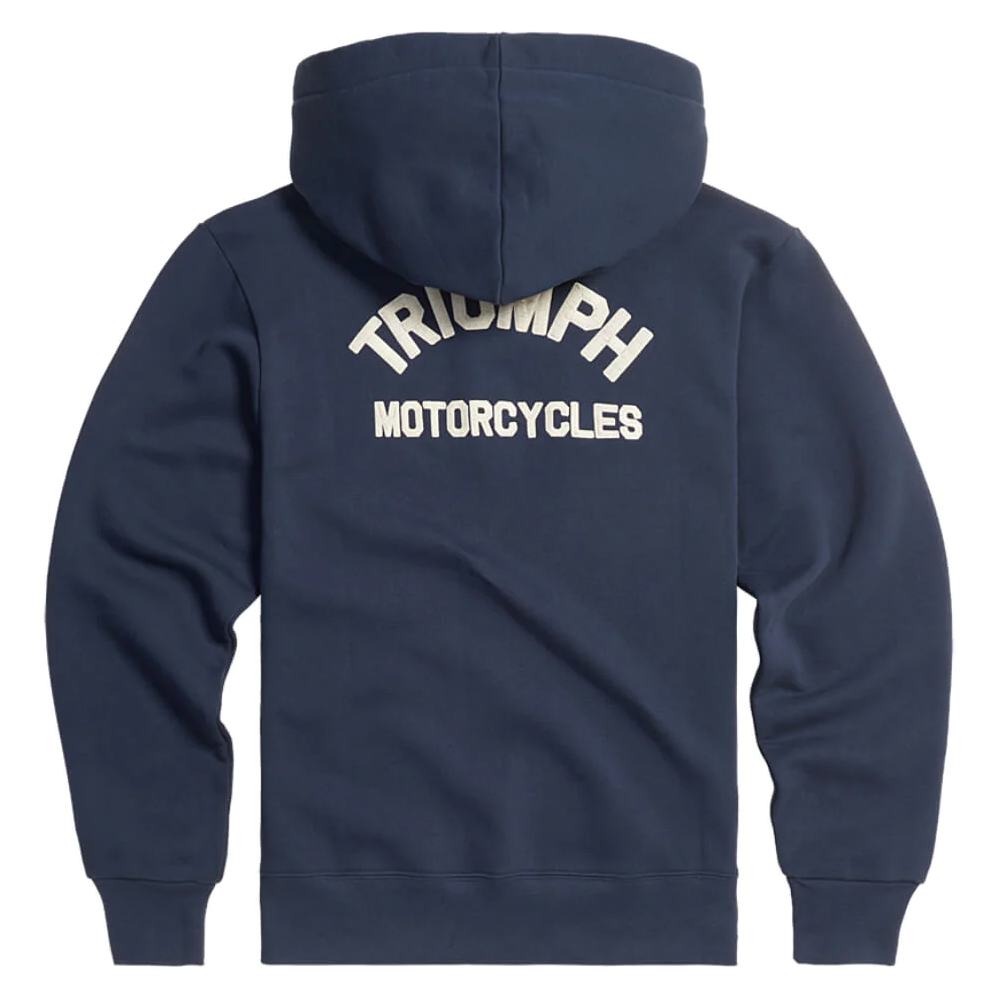 Il cappuccio con coulisse e la zip frontale a tutta lunghezza offrono il massimo comfort e versatilità. La scritta ad arco ricamata Triumph Motorcycles in Bone aggiunge un tocco di stile alla felpa.