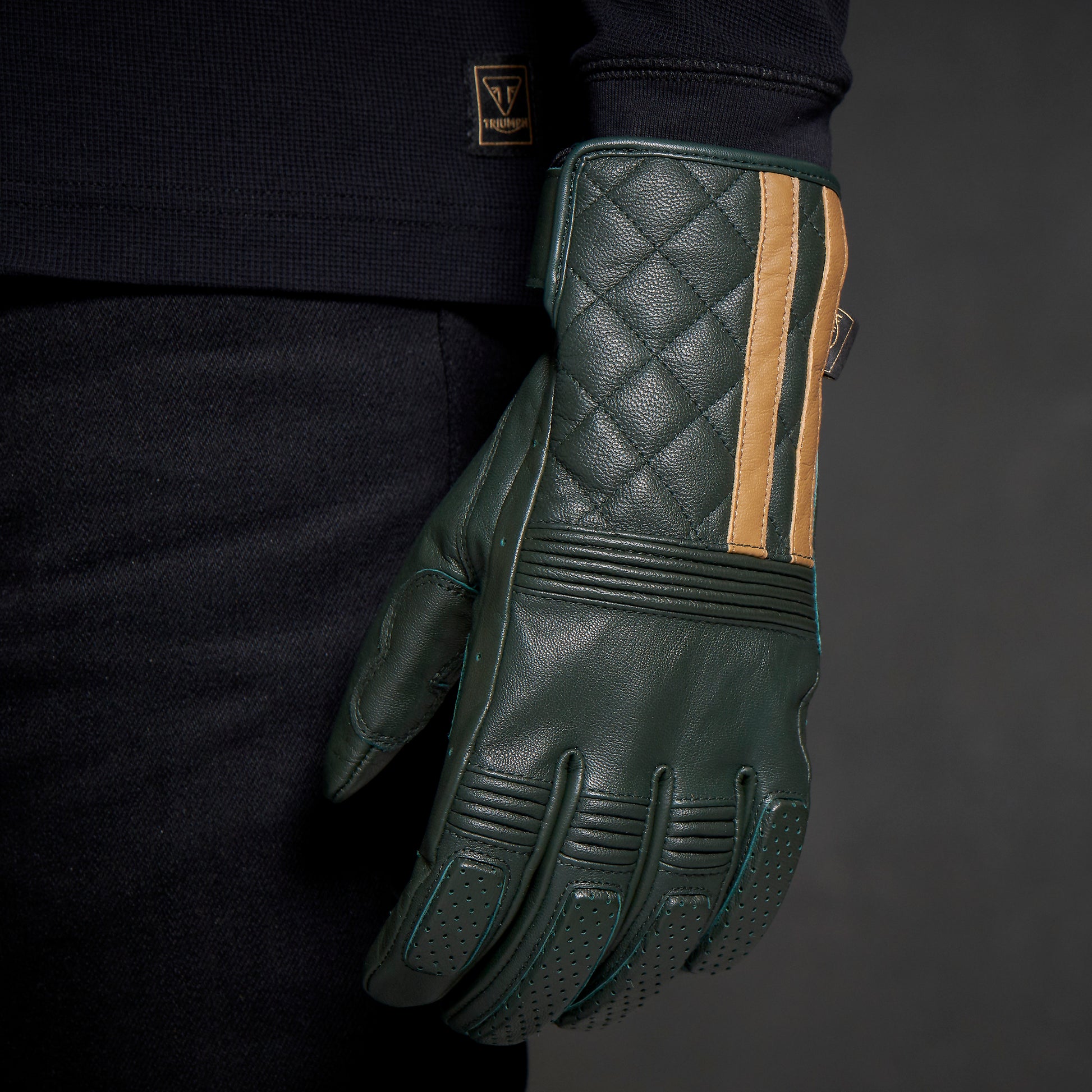 Guanto realizzato interamente in pelle in verde corsa, foderato con rete di flusso d'aria rinfrescante e dita precurvate per un maggiore comfort.