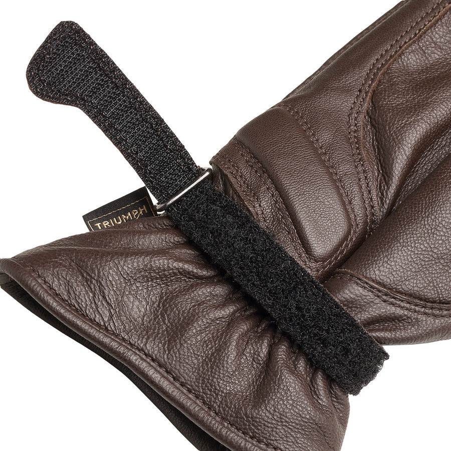 Classico Guanto cruiser in ricca pelle marrone, con polso elasticizzato, palmo leggermente imbottito e dita precurvate per il comfort del pilota.