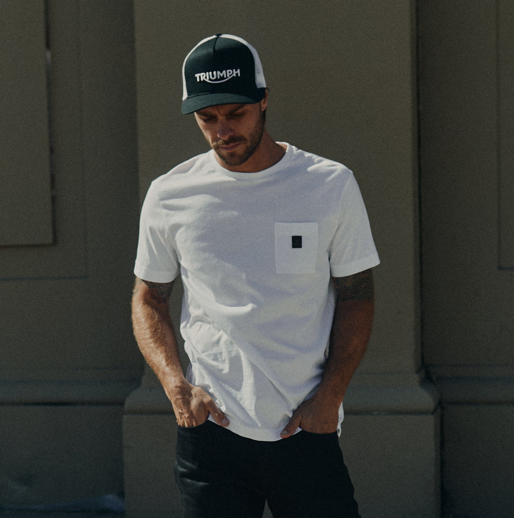 - Comodo taschino sul petto decorato dall'iconica Patch Triumph.
