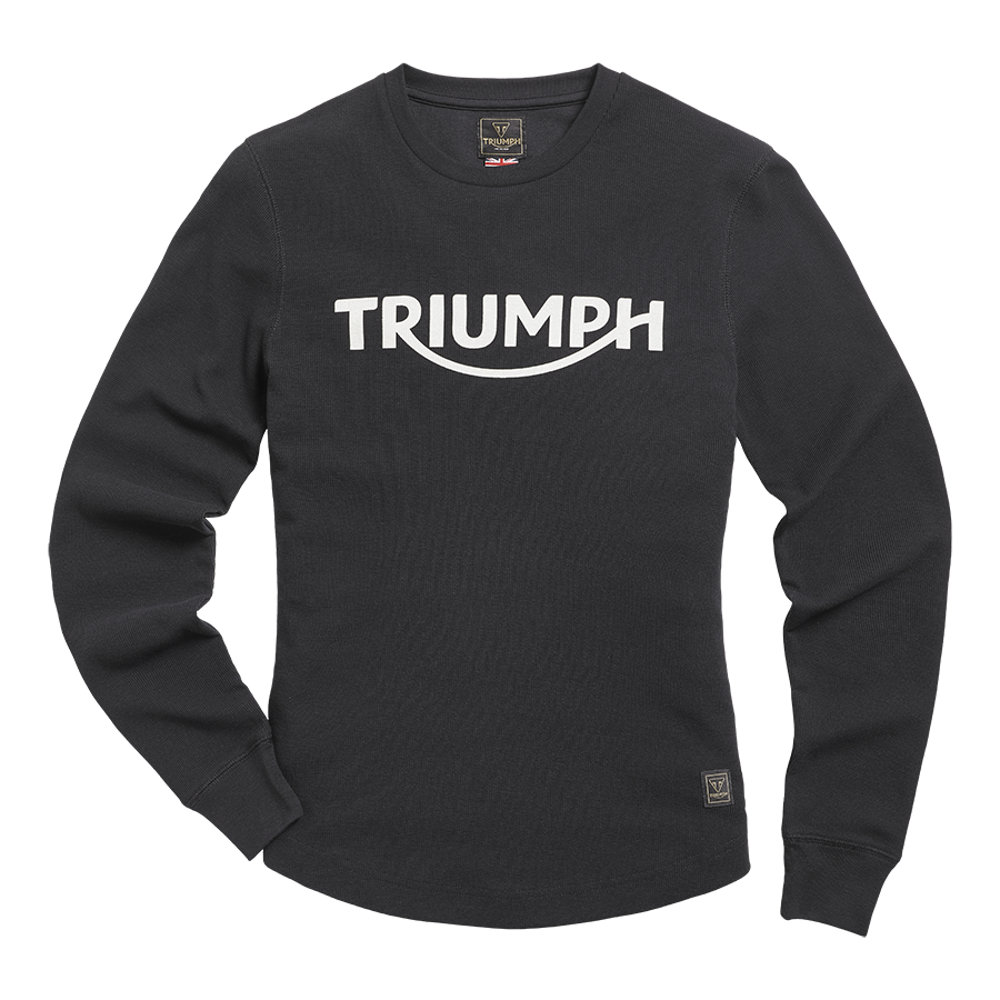Maglia Donna a maniche lunghe in cotone con struttura a nido d'ape in colorazione Nera con logo Triumph stampato in bianco sul davanti e patch con marchio Triumph sull'orlo inferiore.