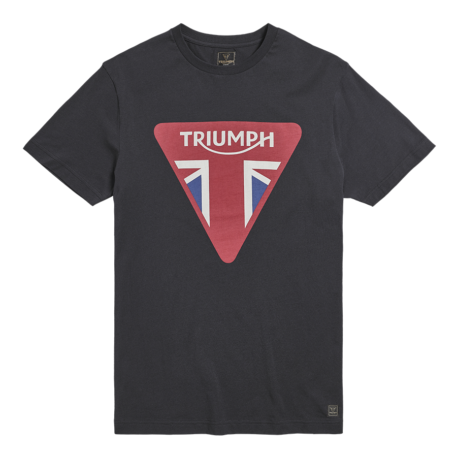 La maglietta Triumph Devon Black Union Jack è una morbida maglietta classica in cotone nero al 100%, caratterizzata da un logo Triumph stampato morbido al tatto di alta qualità con sovrapposizione di colore rosso, bianco e blu sulla parte anteriore del petto e distintivo in tessuto con marchio Triumph sull'orlo inferiore.