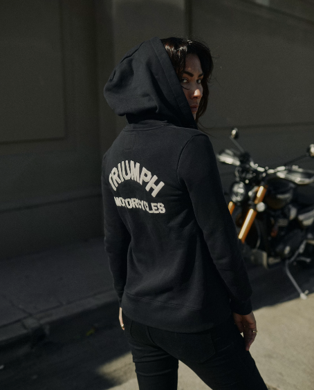 Magnifica e comoda Felpa Lilly da donna con cappuccio e comoda zip frontale... perfetta per distinguerti nell'inconfondibile stile Triumph !!
