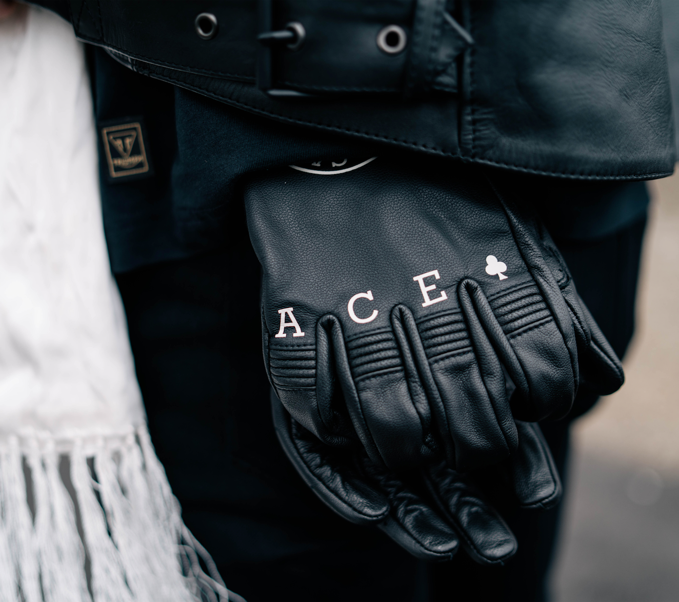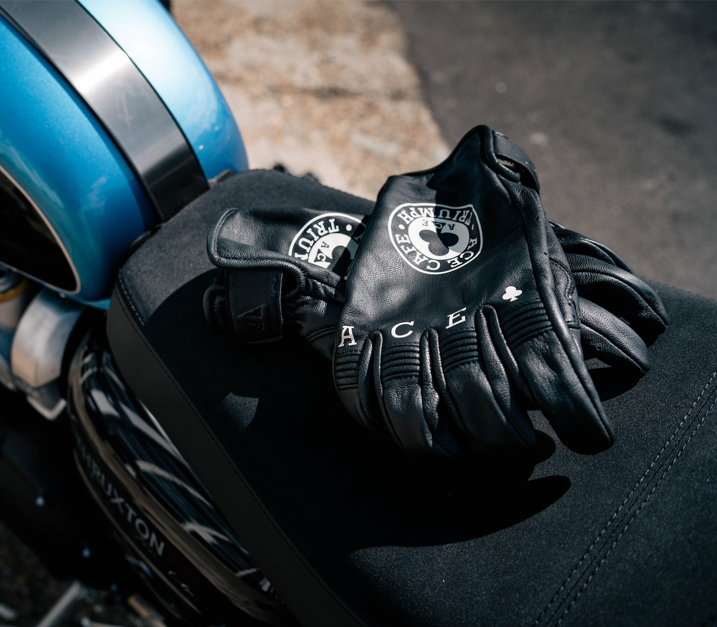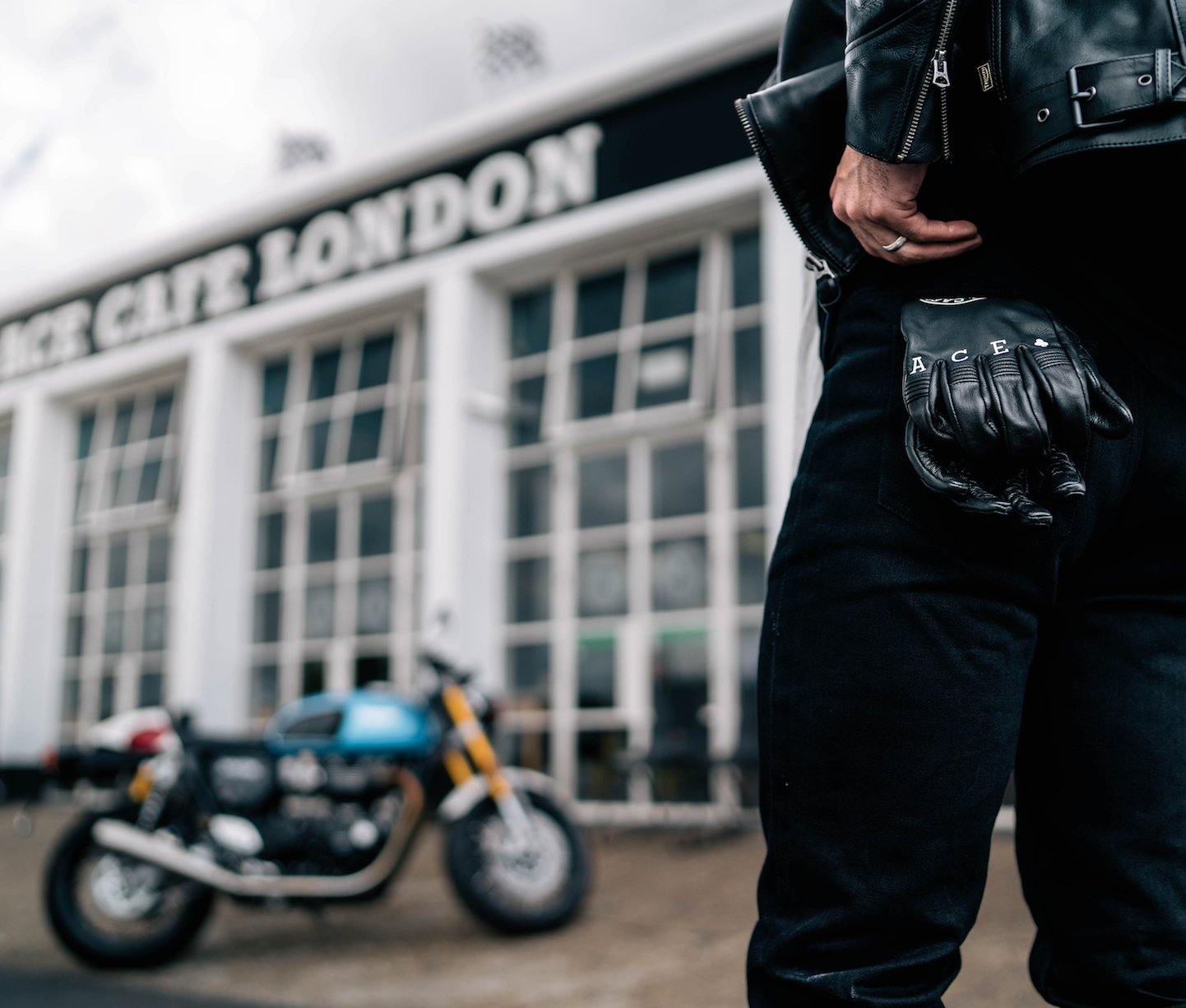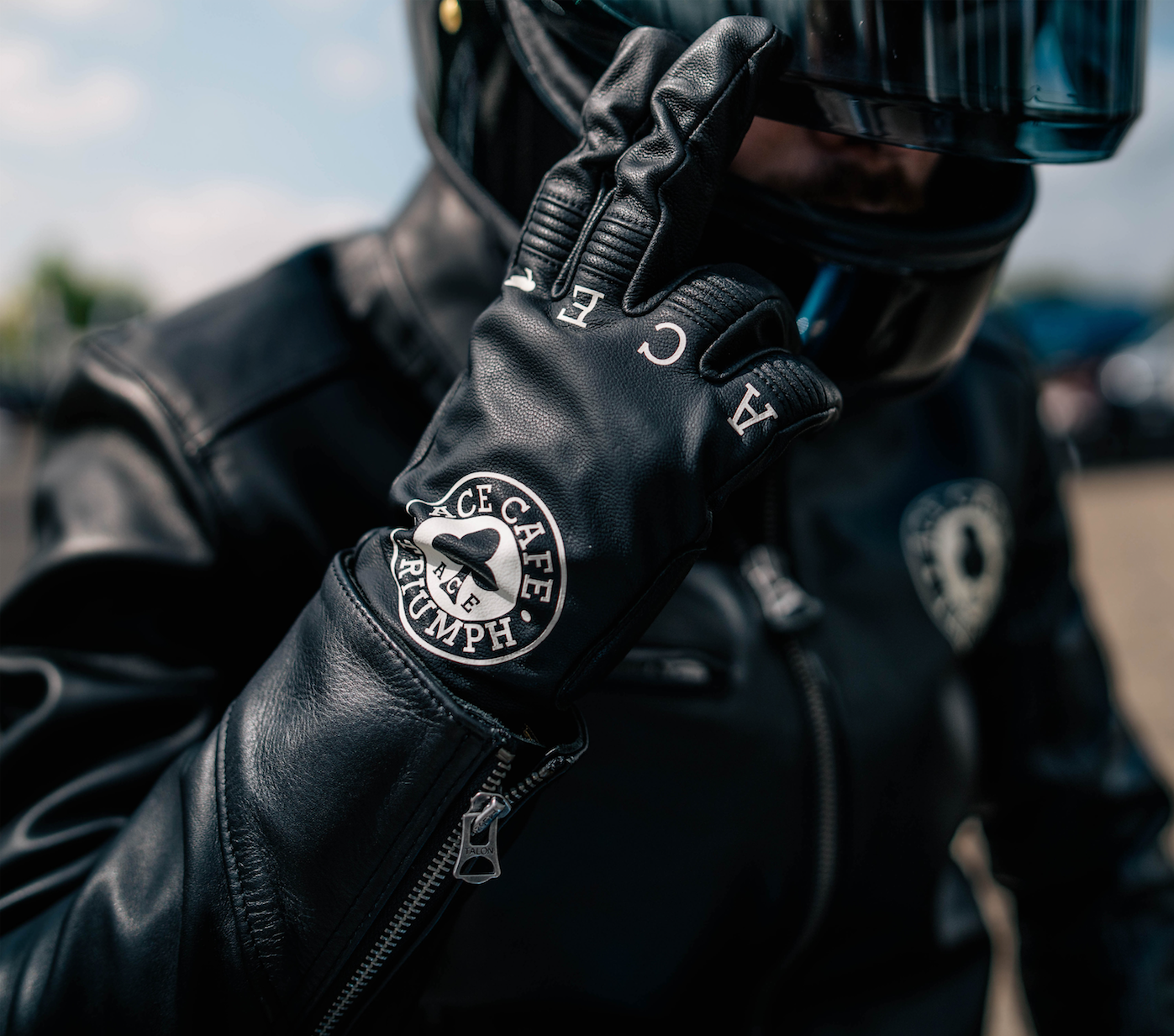 - Con logo Triumph X Ace Cafe stampato sul dorso della mano con il testo Ace Cafe sulle nocche.Â