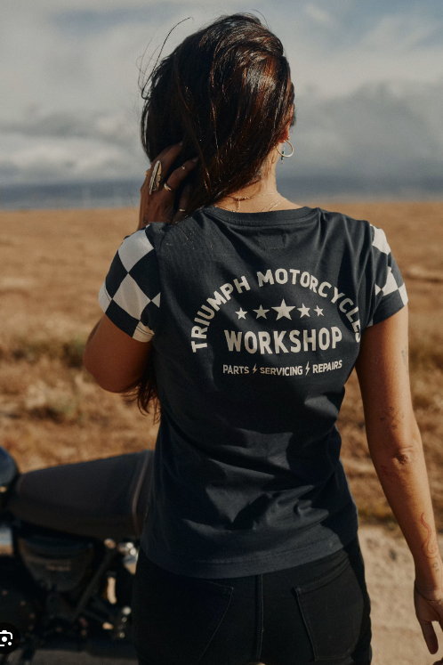 Per tutte le ragazze che vivono e respirano le motociclette Triumph, questa maglietta è la scelta perfetta per distinguersi nell'iconico stile Triumph !!